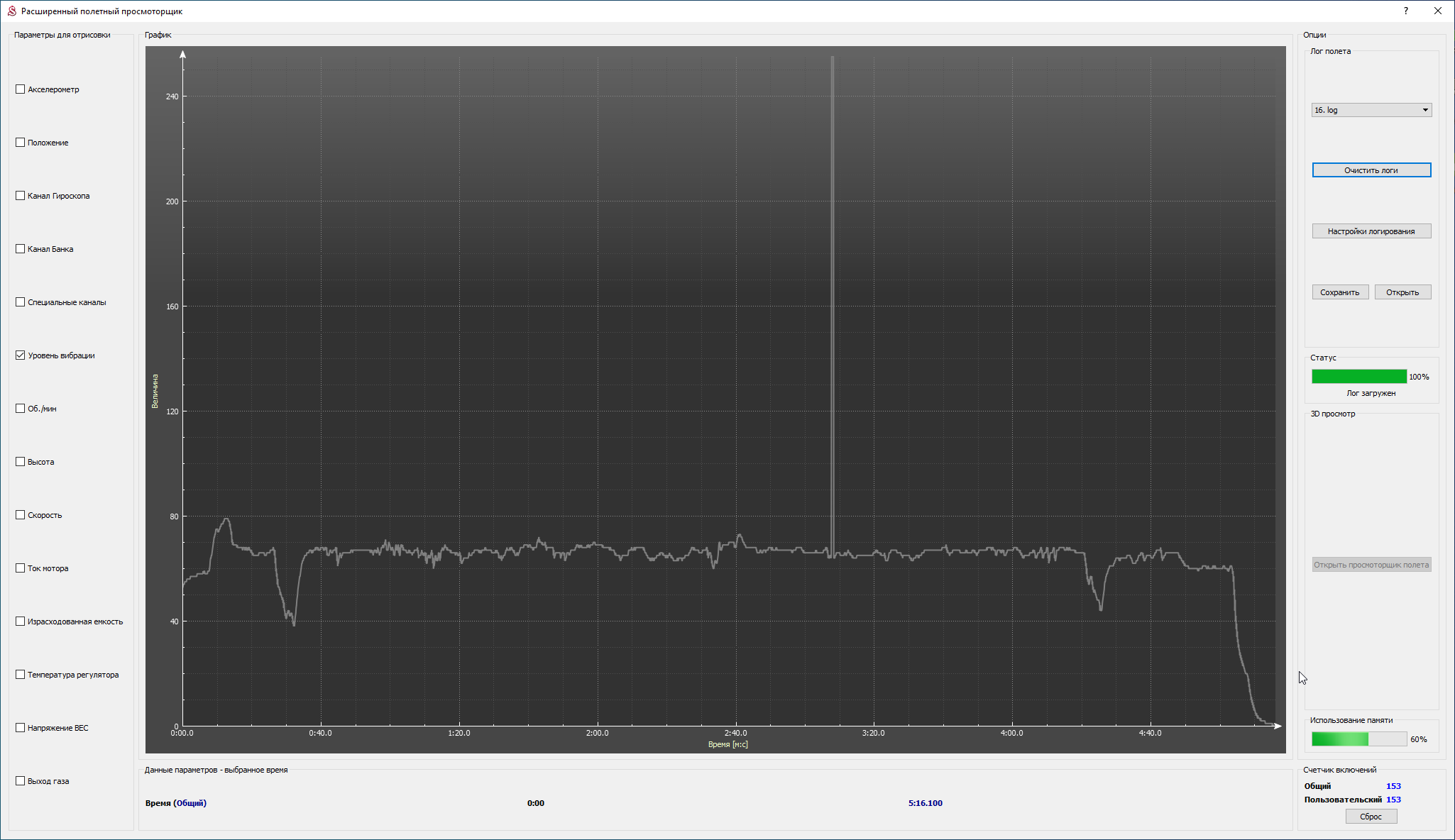 Could you show plot of the vibration level during flight?