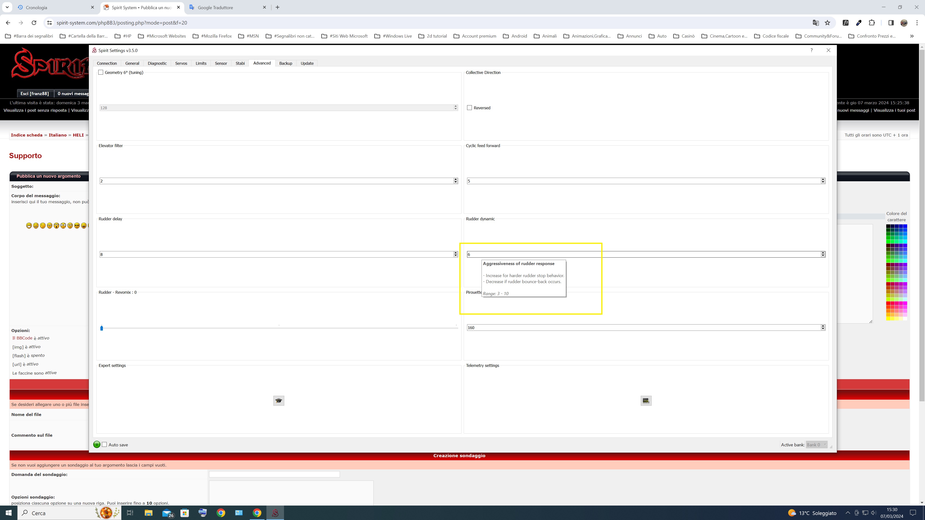 I bring my PC with me to read the descriptions of advanced parameters because I could change them from the radio (integration jeti) but pc it's better for advice but the language in English is one handicap.