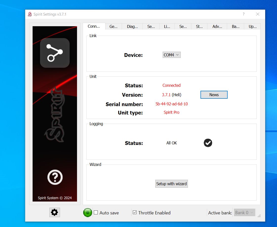 Program does not run with connected via USB, via WiFi or as Demo mode. I tried after turning of Bluetooth, no response. The same windows, Spirit version and spirit hardware works flawlessly on my HP notebooks. There seems to be some setting preventing spirit running in the Lenovo. Please help me to fix this problem.