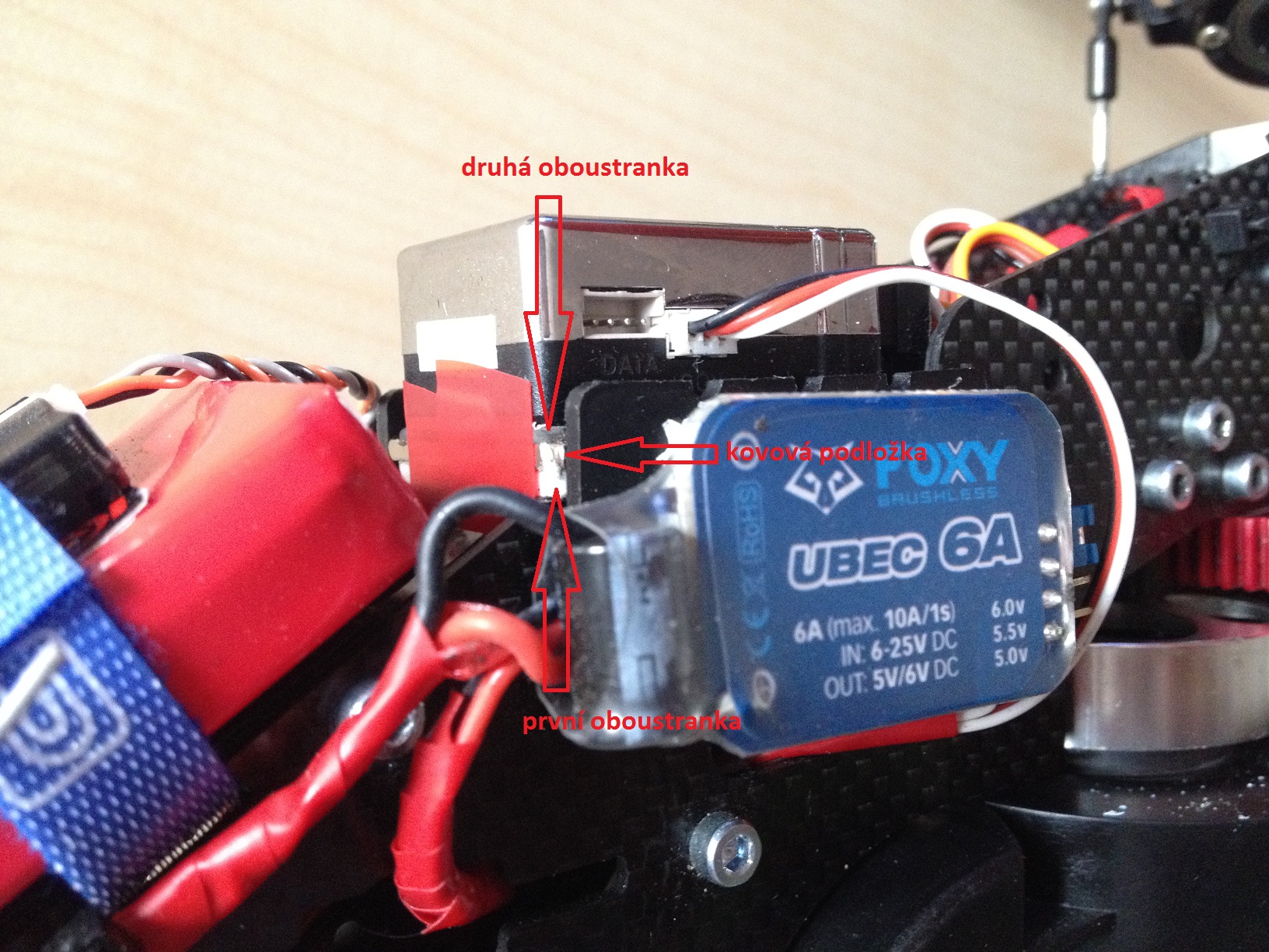 1. Zacal bych s klasickym pripevnenim jednotky. Tzn. jednotku bezne podlepit a rovnou na model. Neni treba pouzivat dalsi podlozky. Jednotka musi drzet velmi pevne, nesmi se na modelu jakkoli pohybovat. Jestli bude vse v poradku se da overit uz na zemi pri roztoceni bez listu.